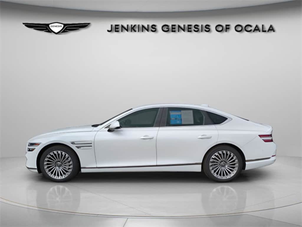 105/89 City/Highway MPG Certified. Uyuni White 2023 Genesis Electrified G80 AWD 1-Speed Automatic Electric Motor