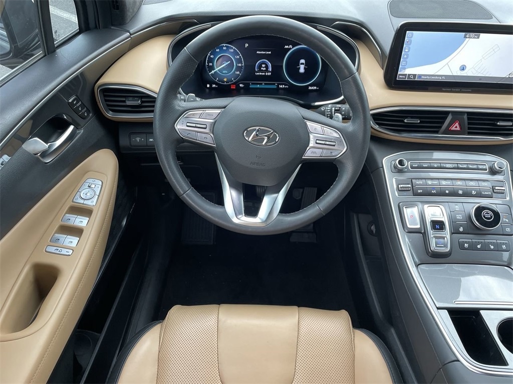 The price does not include tax, tag, license, an electronic filing fee of $449.00**, a private tag agency fee of $199.00**, and a predelivery service charge of $1199.00** **This charge represents costs and profit to the dealer for items such as inspecting, cleaning, and adjusting vehicles, as well as preparing documents related to the sale.* EPA-estimate metric: these are contingent on ideal conditions within a lab. Real-world situations such as carrying passengers or cargo, using climate control, driving style, and ambient temperatures can affect actual metrics. 22/28 City/Highway MPG LOW MILES!, LOCAL TRADE!, BLUETOOTH, BACKUP CAMERA, NAVIGATION SYSTEM, ANDROID AUTO, APPLE PLAY, AUTOMATIC HEADLIGHTS, HEATED/COOLED SEATS, KEYLESS ENTRY, PUSH BUTTON START, BLIND SPOT MONITORS, TOUCH SCREEN CONTROLS, ADAPTIVE CRUISE CONTROL, MOONROOF, Santa Fe Calligraphy, 4D Sport Utility, Hampton Gray, Beige Leather, 12 Speakers, Auto High-beam Headlights, Automatic temperature control, Brake assist, Delay-off headlights, Electronic Stability Control, Emergency communication system, Front dual zone A/C, Fully automatic headlights, Garage door transmitter: HomeLink, harman/kardon® Speakers, Heads-Up Display, Heated & Ventilated Front Bucket Seats, Heated rear seats, Heated steering wheel, Illuminated entry, Memory seat, Option Group 01, Outside temperature display, Panic alarm, Power Liftgate, Power moonroof, Quilted Premium Nappa Leather Seat Trim, Rain sensing wipers, Remote keyless entry, Security system, Wheels: 20" x 8.0J Alloy.