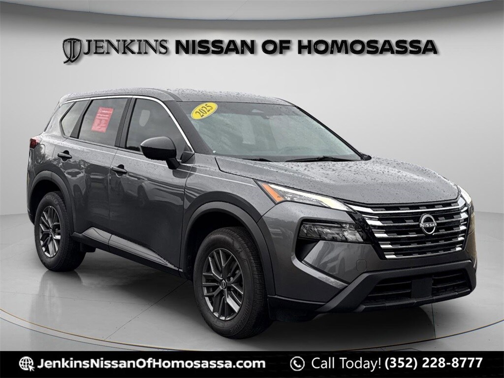 Certified. Gun Metallic Odometer is 3330 miles below market average! 30/37 City/Highway MPG 2025 Nissan Rogue S FWD CVT with Xtronic 1.5L DOHC Jenkins has been doing business for over 50 years and we appreciate your business! Our used cars undergo an extensive Detail and Reconditioning Process, and are thoroughly inspected to meet the criteria for our exclusive warranty. Buy with confidence at Jenkins Nissan of Homosassa! We spend an average of $2779 in Detail and Reconditioning on every used car. The Reconditioning and Maintenance Repair History is Available Upon Request. We don't just inspect, we fix :)
