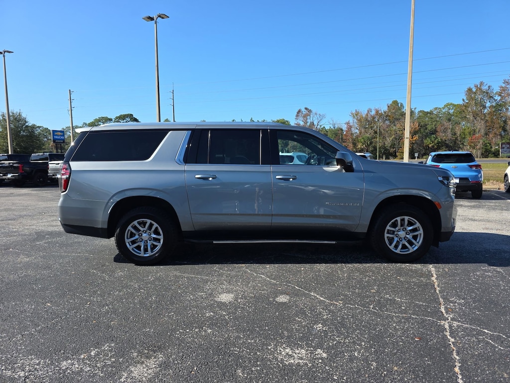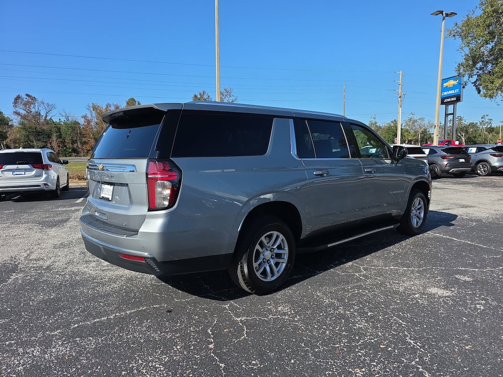 This vehicle comes equipped with Preferred Equipment Group 1LT (10-Way Power Driver & Passenger Seat Adjusters, 1st & 2nd Row Color-Keyed Carpeted Floor Mats, Auto-Dimming Inside Rear-View Mirror, Bose 9-Speaker Stereo Audio System Feature, Bright Front & Rear Door Sill Plates, Color-Keyed Carpeting Floor Covering, Driver & Front Outboard Passenger Airbags, Enhanced Driver Information Center, Floor Console w/Storage Area, Hands-Free Rear Power Programmable Liftgate, Heated Driver & Front Passenger Seats, Infotainment Display, LED Daytime Running Lamps, Memory Settings For Driver, Remote Start, SiriusXM Radio w/360L, Universal Home Remote, Wireless Charging, and Wrapped Steering Wheel), 3.23 Rear Axle Ratio, 3rd row seats: split-bench, 4-Wheel Disc Brakes, 9 Speakers, ABS brakes, Air Conditioning, Alloy wheels, AM/FM radio: SiriusXM with 360L, Apple CarPlay/Android Auto, Auto High-beam Headlights, Auto-dimming Rear-View mirror, Automatic temperature control, Brake assist, Bumpers: body-color, Compass, Delay-off headlights, Deleted 3 Years of Remote Access, Driver door bin, Driver vanity mirror, Dual front impact airbags, Dual front side impact airbags, Electronic Stability Control, Emergency communication system: OnStar and Chevrolet connected services capable, Four wheel independent suspension, Front anti-roll bar, Front Bucket Seats, Front Center Armrest, Front dual zone A/C, Front reading lights, Fully automatic headlights, Garage door transmitter, Heated door mirrors, Heated front seats, Illuminated entry, Leather-Appointed Seating, Low tire pressure warning, Memory seat, Navigation System, Occupant sensing airbag, Outside temperature display, Overhead airbag, Overhead console, Panic alarm, Passenger door bin, Passenger vanity mirror, Power door mirrors, Power driver seat, Power Liftgate, Power passenger seat, Power steering, Power windows, Premium audio system: Chevrolet Infotainment 3 Premium, Premium Smooth Ride Suspension, Radio: Chevrolet Infotainment 3 Premium System, Rain sensing wipers, Rear air conditioning, Rear anti-roll bar, Rear reading lights, Rear seat center armrest, Rear window defroster, Rear window wiper, Remote keyless entry, Roof rack: rails only, Security system, Speed control, Speed-sensing steering, Split folding rear seat, Spoiler, Steering wheel mounted audio controls, Tachometer, Telescoping steering wheel, Tilt steering wheel, Traction control, Trip computer, Variably intermittent wipers, Voltmeter, and Wheels: 18" x 8.5" Bright Silver Painted Aluminum . Jenkins Chevrolet of Homosassa proudly serving Homosassa, Spring Hill, Hernando, Crystal River, Beverly Hills, Inverness. Just a half hour North of Buccaneer Bay. Come see the large, expansive inventory of the Jenkins Auto Group. 15/20 City/Highway MPG CARFAX One-Owner. Sterling Gray Metallic 2023 Chevrolet Suburban LT RWD 10-Speed Automatic with Overdrive EcoTec3 5.3L V8