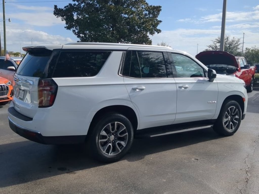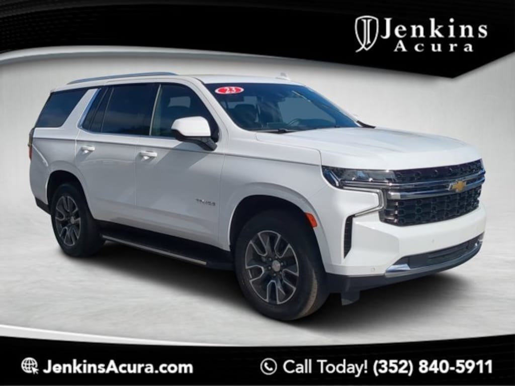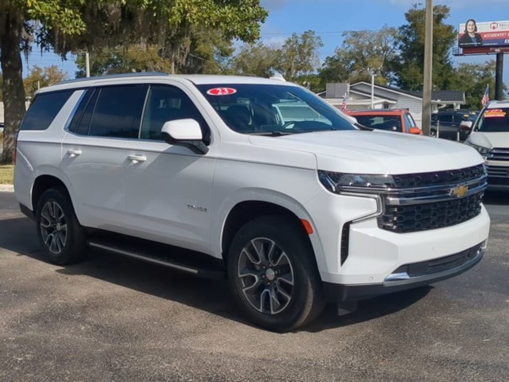 The price does not include tax, tag, license, an electronic filing fee of $449.00**, a private tag agency fee of $199.00**, and a predelivery service charge of $1199.00** **This charge represents costs and profit to the dealer for items such as inspecting, cleaning, and adjusting vehicles, as well as preparing documents related to the sale. * EPA-estimate metric: these are contingent on ideal conditions within a lab. Real-world situations such as carrying passengers or cargo, using climate control, driving style, and ambient temperatures can affect actual metrics. 15/20 City/Highway MPG TEXT OR CALL 352-553-9840 NOW TO GET IN TOUCH WITH BRANDON BONILLA IN SALES, TEXT OR CALL 352-470-3906 NOW TO GET IN TOUCH WITH KARL DEJEAN IN SALES, 4WD, Jet Black w/Cloth Seat Trim, 1st & 2nd Row Color-Keyed Carpeted Floor Mats, 2-Speed Active Electronic AutoTrac Transfer Case, 6 Speakers, 6-Speaker Audio System Feature, Advanced Trailering Package, AM/FM radio: SiriusXM with 360L, Auto High-beam Headlights, Color-Keyed Carpeting Floor Covering, Delay-off headlights, Driver & Front Outboard Passenger Airbags, Extra Capacity Cooling System, Floor Console w/Storage Area, Four wheel independent suspension, Fully automatic headlights, Infotainment Display, Integrated Trailer Brake Controller, LED Daytime Running Lamps, Max Trailering Package, Power driver seat, Power steering, Power windows, Preferred Equipment Group 1LS, Premium Smooth Ride Suspension, Radio: Chevrolet Infotainment 3 System, Remote keyless entry, Remote Start, SiriusXM Radio w/360L, Speed-sensing steering, Steering wheel mounted audio controls, Traction control, Wrapped Steering Wheel. CARFAX One-Owner. Summit White 2023 Chevrolet Tahoe LS 4WD 10-Speed Automatic with Overdrive EcoTec3 5.3L V8