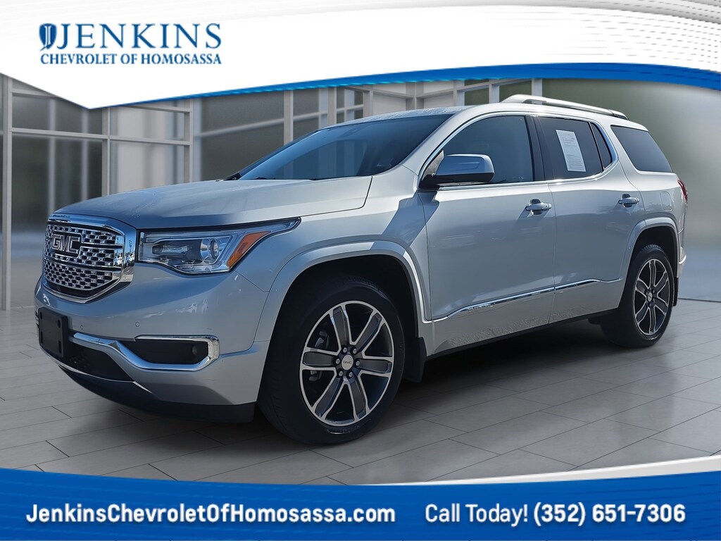 Holiday Drive-Off Event! Season of Savings Blowout This vehicle comes equipped with Preferred Equipment Group 5SA (Electronic Cruise Control w/Set & Resume Speed), Technology Package (Forward Automatic Braking, Full Speed Adaptive Cruise Control w/Stop/Go, and Surround Vision System), FWD, Jet Black Leather, 3.16 Axle Ratio, 3rd row seats: split-bench, 4-Wheel Disc Brakes, 6-Passenger (2-2-2 Seating Configuration), 8 Speakers, ABS brakes, Air Conditioning, Alloy wheels, AM/FM radio: SiriusXM, Apple CarPlay/Android Auto, Auto High-beam Headlights, Auto-dimming door mirrors, Auto-dimming Rear-View mirror, Automatic temperature control, Brake assist, Bumpers: body-color, Compass, Delay-off headlights, Driver door bin, Driver vanity mirror, Dual front impact airbags, Dual front side impact airbags, Dual SkyScape 2-Panel Power Sunroof, Electronic Stability Control, Emergency communication system: OnStar Guidance, Exterior Parking Camera Rear, Four wheel independent suspension, Front anti-roll bar, Front Bucket Seats, Front Center Armrest, Front dual zone A/C, Front fog lights, Front License Plate Bracket, Front reading lights, Fully automatic headlights, Garage door transmitter, Heated door mirrors, Heated front seats, Heated rear seats, Heated steering wheel, High-Intensity Discharge Headlights, Illuminated entry, Knee airbag, Low tire pressure warning, Memory seat, Navigation System, Occupant sensing airbag, Outside temperature display, Overhead airbag, Overhead console, Panic alarm, Passenger door bin, Passenger vanity mirror, Perforated Leather-Appointed Seat Trim, Power door mirrors, Power driver seat, Power Liftgate, Power passenger seat, Power steering, Power windows, Premium audio system: IntelliLink, Radio data system, Radio: AM/FM 8" Diagonal Color Touch Navigation, Rear air conditioning, Rear anti-roll bar, Rear reading lights, Rear window defroster, Rear window wiper, Remote keyless entry, Roof rack: rails only, Security system, SiriusXM Satellite Radio, Speed control, Speed-sensing steering, Spoiler, Steering wheel mounted audio controls, Tachometer, Telescoping steering wheel, Tilt steering wheel, Traction control, Trip computer, Variably intermittent wipers, Ventilated front seats, Voltmeter, and Wheels: 20" x 8" Polished Aluminum (4) . Jenkins Chevrolet of Homosassa proudly serving Homosassa, Spring Hill, Hernando, Crystal River, Beverly Hills, Inverness. Just a half hour North of Buccaneer Bay. Come see the large, expansive inventory of the Jenkins Auto Group. 18/25 City/Highway MPG FWD, Jet Black Leather. Clean CARFAX. CARFAX One-Owner. Quicksilver Metallic 2017 GMC Acadia Denali FWD 6-Speed Automatic 3.6L V6 SIDI DOHC VVT