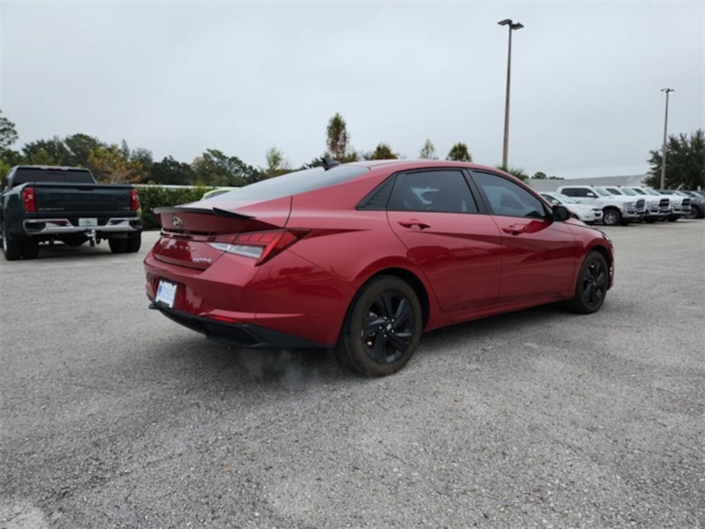 The price does not include tax, tag, license, an electronic filing fee of $449.00**, a private tag agency fee of $199.00**, and a predelivery service charge of $1199.00** **This charge represents costs and profit to the dealer for items such as inspecting, cleaning, and adjusting vehicles, as well as preparing documents related to the sale. * EPA-estimate metric: these are contingent on ideal conditions within a lab. Real-world situations such as carrying passengers or cargo, using climate control, driving style, and ambient temperatures can affect actual metrics. 53/56 City/Highway MPG I4. CARFAX One-Owner. Clean CARFAX. Scarlet Red Pearl 2023 Hyundai Elantra Hybrid Blue FWD 6-Speed Dual Clutch I4