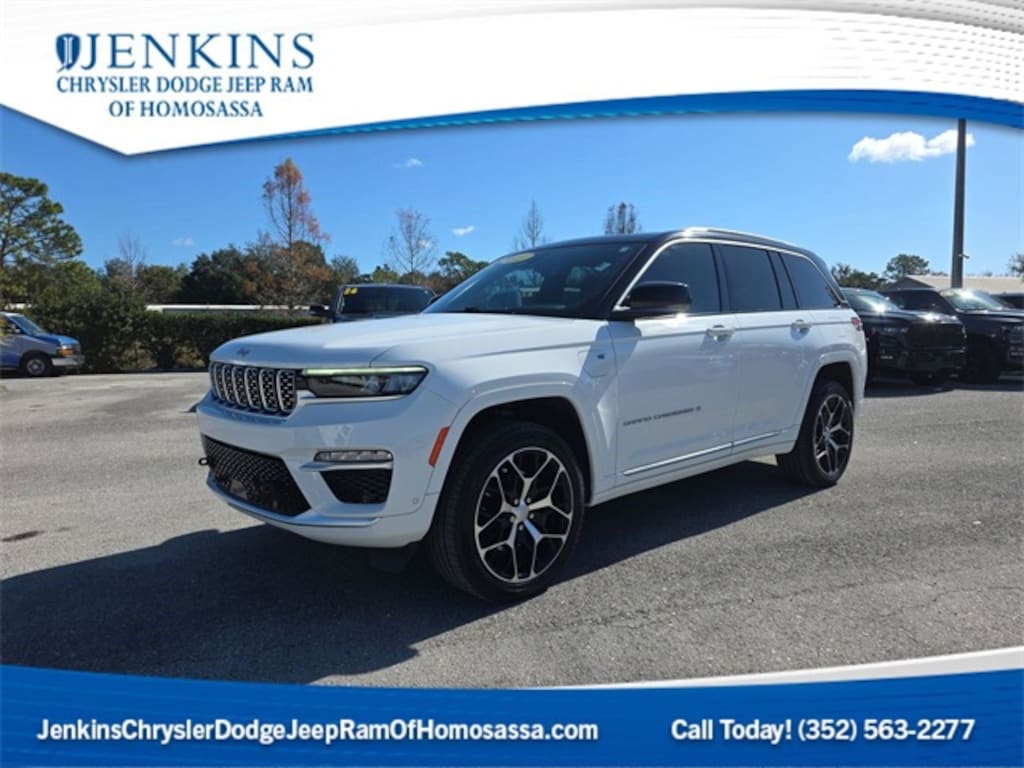DECEMBER SAVINGS, END OF YEAR DEALS, GET THEM BEFORE THEY ARE GONE! The price does not include tax, tag, license, an electronic filing fee of $449.00**, a private tag agency fee of $199.00**, and a predelivery service charge of $1199.00** **This charge represents costs and profit to the dealer for items such as inspecting, cleaning, and adjusting vehicles, as well as preparing documents related to the sale. * EPA-estimate metric: these are contingent on ideal conditions within a lab. Real-world situations such as carrying passengers or cargo, using climate control, driving style, and ambient temperatures can affect actual metrics. NAVIGATION SYSTEM, ALLOY WHEELS, BACKUP CAMERA, BLUETOOTH, CLIMATE PACKAGE, HEAT PACKAGE, LEATHER SEATS, MEMORY PACKAGE, POWER PACKAGE, REMOTE START, TOW PACKAGE, SUNROOF/MOONROOF, TECHNOLOGY PACKAGE, 2.0L I4 DOHC, 4WD. Clean CARFAX. Certified. Bright White Clearcoat 2022 Jeep Grand Cherokee Summit Reserve 4xe 4WD 8-Speed Automatic 2.0L I4 DOHC