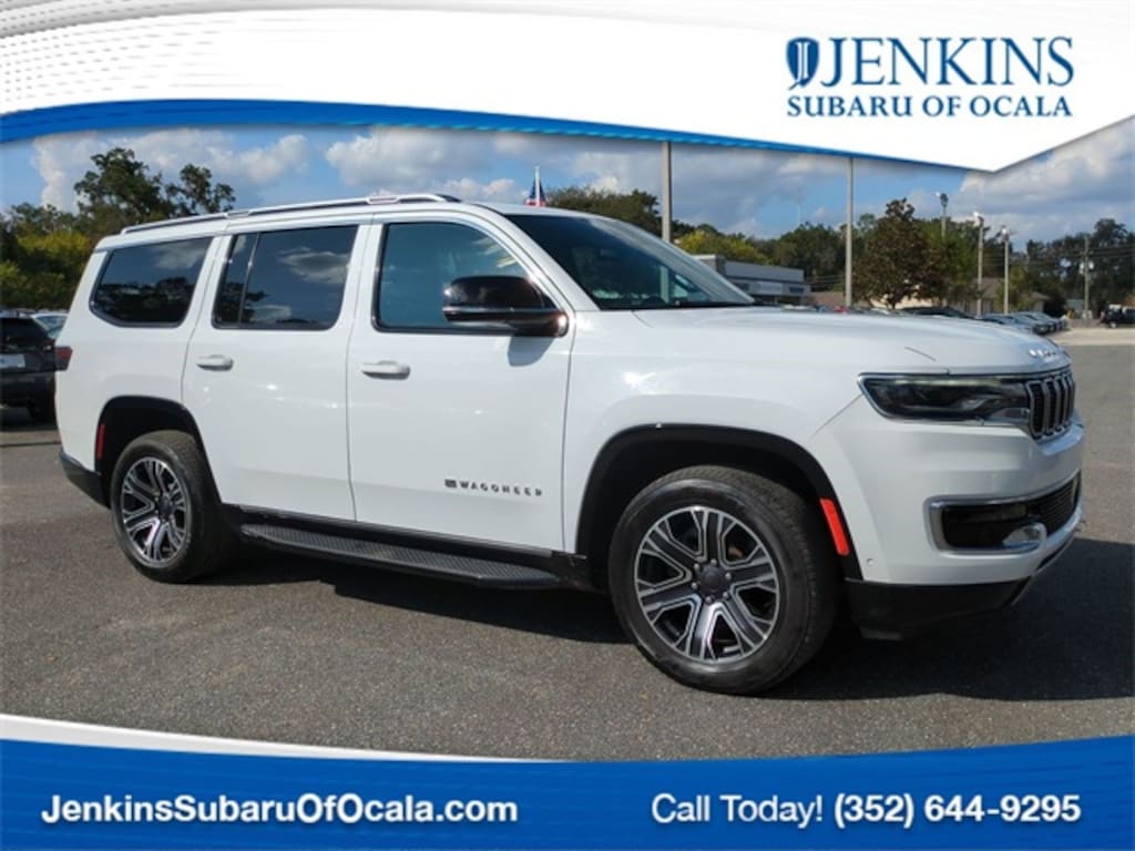 This vehicles comes equipped with 10 Speakers, 3rd row seats: bench, 4-Wheel Disc Brakes, ABS brakes, Adjustable pedals, Air Conditioning, Alloy wheels, AM/FM radio: SiriusXM with 360L, Anti-whiplash front head restraints, Apple CarPlay/Android Auto, Audio memory, Auto-dimming door mirrors, Auto-dimming Rear-View mirror, Auto-leveling suspension, Automatic temperature control, Brake assist, Bumpers: body-color, Compass, Delay-off headlights, Driver door bin, Driver vanity mirror, Driver's Seat Mounted Armrest, Dual front impact airbags, Dual front side impact airbags, Electronic Stability Control, Emergency communication system: Wagoneer Connect, Exterior Parking Camera Rear, Four wheel independent suspension, Front anti-roll bar, Front Bucket Seats, Front Center Armrest w/Storage, Front dual zone A/C, Front fog lights, Front reading lights, Fully automatic headlights, Garage door transmitter, Genuine wood console insert, Genuine wood dashboard insert, Genuine wood door panel insert, Heated door mirrors, Heated front seats, Heated rear seats, Heated steering wheel, Illuminated entry, Knee airbag, Leather Trimmed Bucket Seats, Low tire pressure warning, Memory seat, Navigation System, Normal Duty Suspension, Occupant sensing airbag, Outside temperature display, Overhead airbag, Overhead console, Panic alarm, Passenger door bin, Passenger seat mounted armrest, Passenger vanity mirror, Pedal memory, Power adjustable front head restraints, Power door mirrors, Power driver seat, Power Liftgate, Power passenger seat, Power steering, Power windows, Radio data system, Radio: Uconnect 5 Nav w/10.1" Display, Rain sensing wipers, Rear air conditioning, Rear anti-roll bar, Rear dual zone A/C, Rear reading lights, Rear seat center armrest, Rear window defroster, Rear window wiper, Reclining 3rd row seat, Remote keyless entry, Security system, Speed control, Speed-sensing steering, Speed-Sensitive Wipers, Split folding rear seat, Steering wheel memory, Steering wheel mounted audio controls, Tachometer, Telescoping steering wheel, Tilt steering wheel, Traction control, Trip computer, Turn signal indicator mirrors, Variably intermittent wipers, Ventilated front seats, Voltmeter, and Wheels: 20" x 9.0" Premium 2 Aluminum . Odometer is 7593 miles below market average!
