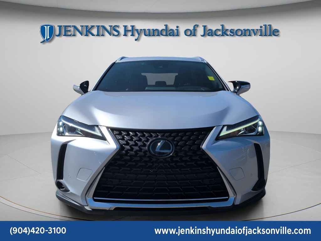 The price does not include tax, tag, license, an electronic filing fee of $449.00**, a private tag agency fee of $199.00**, and a predelivery service charge of $1199.00** **This charge represents costs and profit to the dealer for items such as inspecting, cleaning, and adjusting vehicles, as well as preparing documents related to the sale. * EPA-estimate metric: these are contingent on ideal conditions within a lab. Real-world situations such as carrying passengers or cargo, using climate control, driving style, and ambient temperatures can affect actual metrics. 41/38 City/Highway MPG Clean CARFAX. This 2020 Lexus UX 250h Base in Silver features Accessory Package (Alloy Wheel Locks, Carpet Cargo Mat, and Key Gloves), Premium Package (Blind Spot Monitor, Driver & Passenger Seat Heater, Driver & Passenger Seat Ventilation, Heated Manual Retractable Outside Rear View Mirror, Luxury NuLuxe Seat Surfaces, Power Tilt & Slide Moonroof/Sunroof, Rain Sensor Windshield Wipers, and Washi Instrument Panel), 3.605 Front Axle Ratio, 4-Wheel Disc Brakes, 6 Speakers, ABS brakes, Air Conditioning, Alloy wheels, AM/FM radio: SiriusXM, Apple CarPlay, Auto High-beam Headlights, Automatic temperature control, Brake assist, Bumpers: body-color, CD player, Compass, Delay-off headlights, Driver door bin, Driver vanity mirror, Dual front impact airbags, Dual front side impact airbags, Electrochromic Inside Rear-View Mirror, Electronic Stability Control, Emergency communication system: Lexus Enform Safety Connect, Exterior Parking Camera Rear, Four wheel independent suspension, Front anti-roll bar, Front Bucket Seats, Front Center Armrest, Front dual zone A/C, Front reading lights, Fully automatic headlights, Heated 3-Spoke Leather Steering Wheel, Heated door mirrors, Illuminated entry, Intuitive Parking Assist, Knee airbag, Lane Departure Warning System, Leather Shift Knob, Leather steering wheel, Low tire pressure warning, NuLuxe Seat Surfaces, Occupant sensing airbag, Outside temperature display, Overhead airbag, Panic alarm, Passenger door bin, Passenger vanity mirror, Power door mirrors, Power driver seat, Power Front Bucket Seats, Power passenger seat, Power Rear Door w/Kick Sensor, Power steering, Power windows, Radio data system, Radio: Lexus Multimedia System w/6 Speakers, Rear anti-roll bar, Rear reading lights, Rear side impact airbag, Rear window defroster, Rear window wiper, Remote keyless entry, Roof rack: rails only, Security system, Speed control, Speed-sensing steering, Split folding rear seat, Spoiler, Steering wheel mounted audio controls, Tachometer, Telescoping steering wheel, Tilt steering wheel, Traction control, Trip computer, Turn signal indicator mirrors, Variably intermittent wipers, Wheels: 18" x 7J 5-Spk Dark Gray Met Alum Alloy, and Wireless Charger . Visit our showroom 24/7 at Jenkinshyundaiofjacksonville or call 904-420-3100. AWD