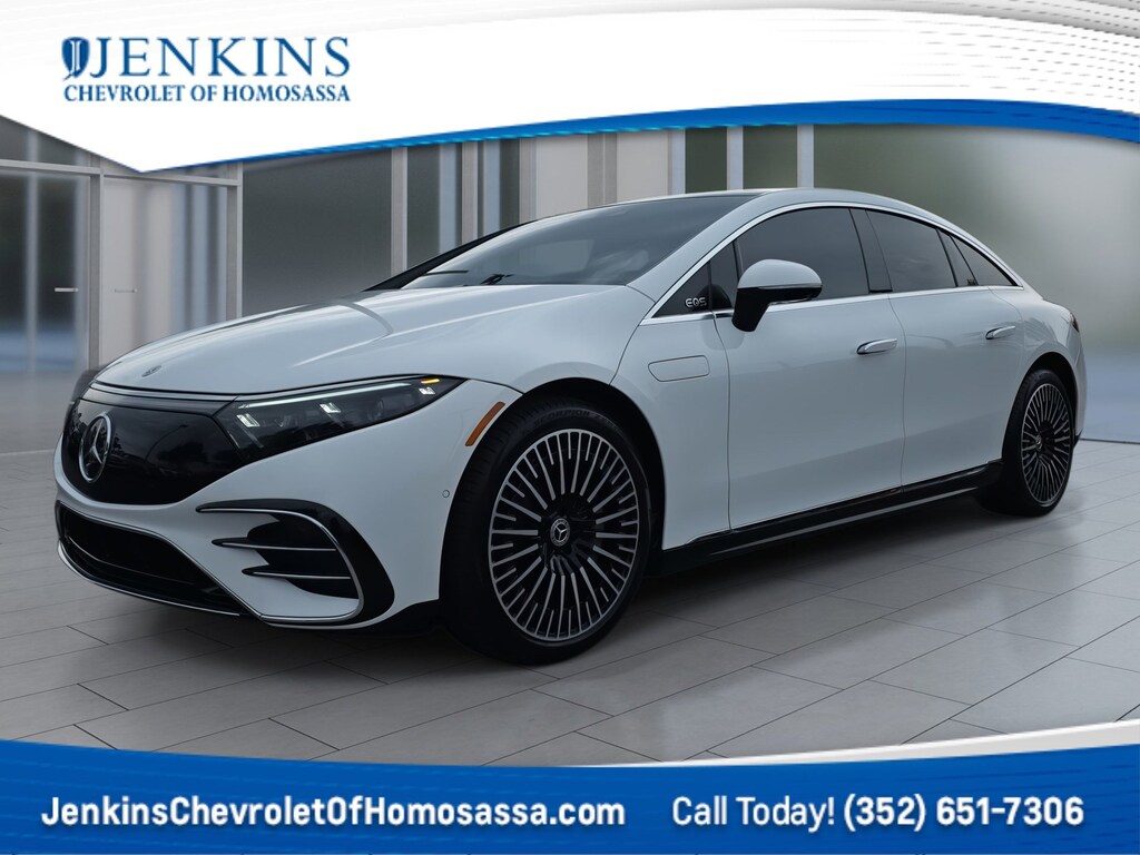 This vehicle comes equipped with Premium Trim Package, 15 Speakers, 4-Wheel Disc Brakes, ABS brakes, Adaptive suspension, Air Conditioning, Alloy wheels, Auto High-beam Headlights, Auto tilt-away steering wheel, Auto-dimming door mirrors, Auto-dimming Rear-View mirror, Auto-leveling suspension, Automatic temperature control, Brake assist, Bumpers: body-color, Compass, Delay-off headlights, Driver door bin, Driver vanity mirror, Dual front impact airbags, Dual front side impact airbags, Electronic Stability Control, Emergency communication system: eCall Emergency System, Exterior Parking Camera Rear, Four wheel independent suspension, Front anti-roll bar, Front Bucket Seats, Front Center Armrest, Front dual zone A/C, Front reading lights, Garage door transmitter: HomeLink, Genuine wood door panel insert, Head restraints memory, Heated & Ventilated Power Front Seats, Heated door mirrors, Heated front seats, HVAC memory, Illuminated entry, Knee airbag, Leather Seat Trim, Leather steering wheel, Low tire pressure warning, MB Apps/Apple CarPlay/Android Auto, Memory seat, Navigation System, Occupant sensing airbag, Outside temperature display, Overhead airbag, Overhead console, Panic alarm, Passenger door bin, Passenger vanity mirror, Power adjustable front head restraints, Power door mirrors, Power driver seat, Power Liftgate, Power moonroof: Panorama, Power passenger seat, Power steering, Power windows, Premium audio system: MBUX, Radio data system, Radio: Burmester® 710W Sound System, Rain sensing wipers, Rear anti-roll bar, Rear reading lights, Rear seat center armrest, Rear window defroster, Remote keyless entry, Security system, Speed control, Speed-sensing steering, Speed-Sensitive Wipers, Split folding rear seat, Spoiler, Steering wheel memory, Steering wheel mounted audio controls, Telescoping steering wheel, Tilt steering wheel, Traction control, Trip computer, Turn signal indicator mirrors, Variably intermittent wipers, Ventilated front seats, and Wheels: 20" x 8.5J 5-Spoke w/Black Accents . Jenkins Chevrolet of Homosassa proudly serving Homosassa, Spring Hill, Hernando, Crystal River, Beverly Hills, Inverness. Just a half hour North of Buccaneer Bay. Come see the large, expansive inventory of the Jenkins Auto Group. Clean CARFAX. Polar White 2023 Mercedes-Benz EQS 450 RWD 1-Speed Automatic Electric Motor