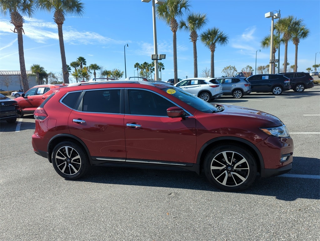 The price does not include tax, tag, license, an electronic filing fee of $449.00**, a private tag agency fee of $199.00**, and a predelivery service charge of $1199.00** **This charge represents costs and profit to the dealer for items such as inspecting, cleaning, and adjusting vehicles, as well as preparing documents related to the sale. * EPA-estimate metric: these are contingent on ideal conditions within a lab. Real-world situations such as carrying passengers or cargo, using climate control, driving style, and ambient temperatures can affect actual metrics. 26/33 City/Highway MPG Rogue SL, 4D Sport Utility, Scarlet Ember Tintcoat, Charcoal Leather, 19" Aluminum Alloy Wheels, Auto High-beam Headlights, Automatic temperature control, Blind Spot Warning, Brake assist, Electronic Stability Control, Emergency communication system: NissanConnect Services, Exterior Parking Camera Rear, Front dual zone A/C, Garage door transmitter: HomeLink, Heated front seats, Heated steering wheel, Lane Departure Warning System, LED Headlights, Memory seat, Navigation System, NissanConnect featuring Apple CarPlay and Android Auto, Outside temperature display, Panic alarm, Power Liftgate, Power Panoramic Moonroof, Premium Package, Rear Parking Sensors, Remote keyless entry, Security system.