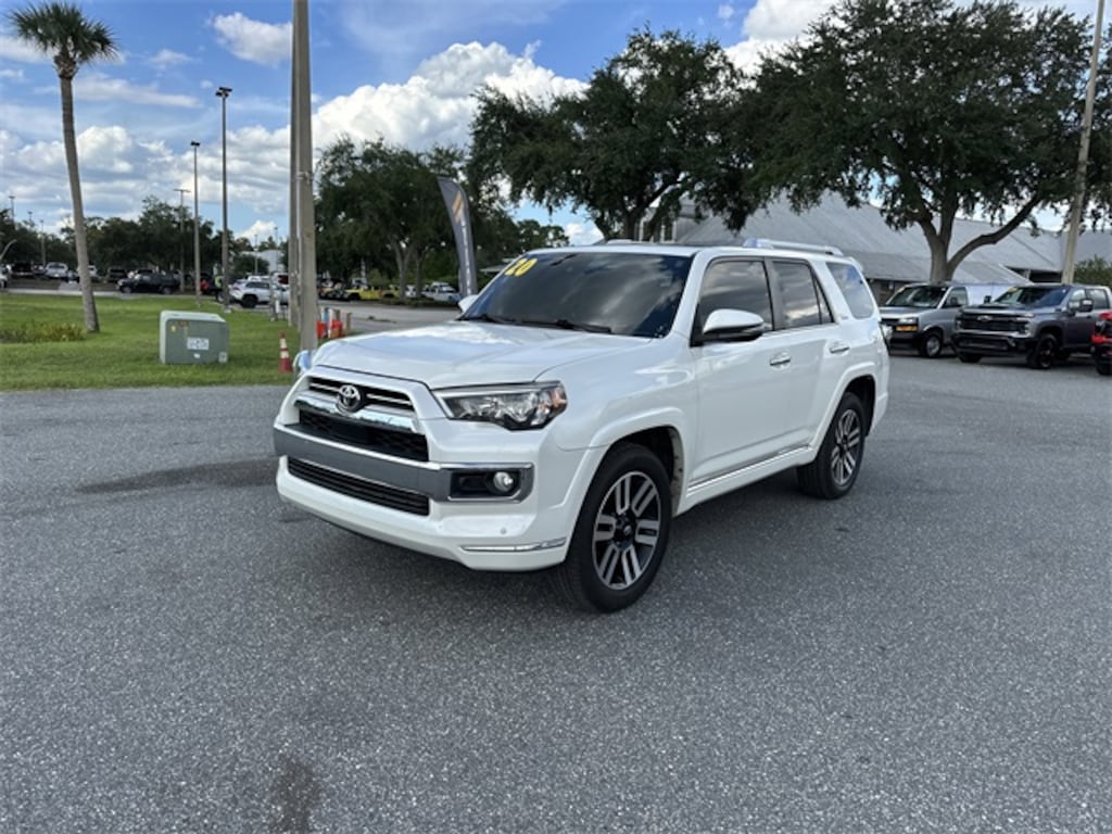 The price does not include tax, tag, license, an electronic filing fee of $449.00**, a private tag agency fee of $199.00**, and a predelivery service charge of $1199.00** **This charge represents costs and profit to the dealer for items such as inspecting, cleaning, and adjusting vehicles, as well as preparing documents related to the sale. * EPA-estimate metric: these are contingent on ideal conditions within a lab. Real-world situations such as carrying passengers or cargo, using climate control, driving style, and ambient temperatures can affect actual metrics. 16/19 City/Highway MPG 4WD, Black/Graphite w/Leather Seat Trim, 20" x 7.5" Unique Dual 6-Spoke Alloy Wheels, ABS brakes, Active Cruise Control, Alloy wheels, Body Color Heated Mirrors, Compass, Electronic Stability Control, Front dual zone A/C, Heated door mirrors, Heated front seats, Heated/Ventilated Front Bucket Seats, Illuminated entry, Leather Seat Trim, Low tire pressure warning, Power moonroof, Remote keyless entry, Traction control. Clean CARFAX. Super White 2020 Toyota 4Runner Limited 4WD 5-Speed Automatic with Overdrive 4.0L V6 SMPI DOHC